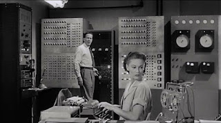 For the cast, we have the poor-man’s Richard Carlson, Hugh Marlowe, as the can-do square jaw, who acquits himself fairly well. And he’s ably supported by Joan Taylor, Morris Ankrum (-- I can’t be the only one who laughed out loud in the theater when General Ankrum showed up in the movie within the movie in Joe Dante’s Matinee (1993), right?), Thomas Henry Browne, and fast-shooting Donald Curtis. Also onboard was prolific voice actor Paul Frees, who provided the over-modulated voice of the alien invaders.