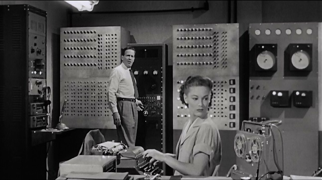 We open in media newlyweds as Dr. Russell Marvin and the former Miss Carol Hanley have finally made it official, in a Justice of the Peace sense, and are currently plotting out their pending honeymoon as they motor down a lonesome desert highway -- destination, a fortified military base and research facility, which serves as the current headquarters of Operation Skyhook, where Dr. Marvin (Marlowe) serves as the chief civilian engineer.