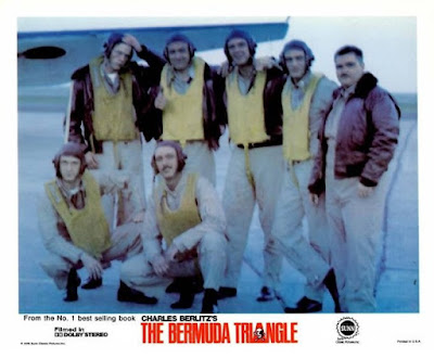 Dimensional rifts caused by all that magnetic interference is also given some play, as is a wild reenactment of the "failed" Philadelphia Experiment, where the U.S.S. Eldridge is super-charged for naught and all her sailors turned into ghostly, intangible lab-rats. But the film's own favorite pet theory is a UFO connection -- which I'm sure had nothing to do at all with the release of Close Encounters of the Third Kind (1977) the year before, claiming there's a secret underwater alien base near Puerto Rico, who have been picking off ships and planes to keep it a secret since the 1800s.