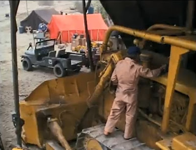 After towing the crippled machine back to base-camp, a suspicious Kelly orders Chub to give the D9 a thorough going over. But his mechanic can’t find anything diagnostically wrong with the engine or anything else for that matter.