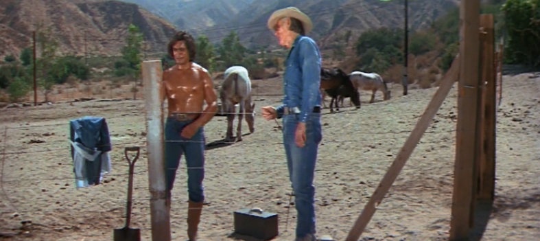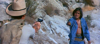 Now completely torn, Jesse presses on and tracks his fugitive into the familiar looking desert near Vasquez Rocks (-- ya know, where Captain Kirk fought the Gorn); and when he finally catches up to Firecloud, these two men, trapped in Colby's web of hate, face off for one final showdown.